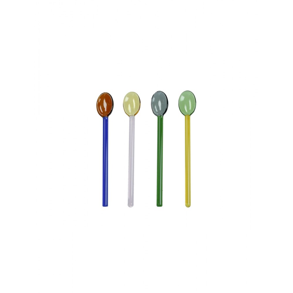 Set di 4 cucchiaini in vetro colorato, vivaci e originali per ogni occasione.