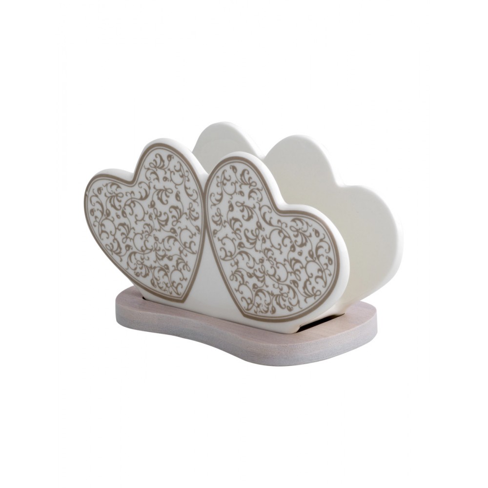 Portatovaglioli in Porcellana con Decoro Tortora e Supporto in Bamboo Naturale