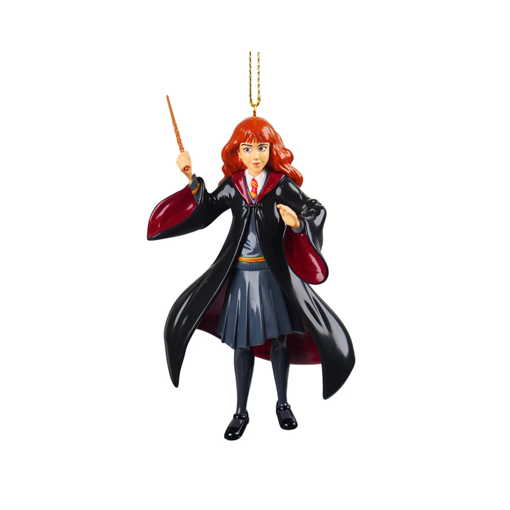 Porta la magia di Hogwarts sul tuo albero di Natale con questa splendida decorazione di Hermione Granger, la strega più brillante della saga di Harry Potter. Raffigurata con la divisa di Grifondoro, la bacchetta alzata e il suo inconfondibile mantello, è l’ornamento perfetto per tutti i fan del mondo magico. Realizzata in resina resistente con dettagli dipinti a mano, è dotata di cordoncino dorato per essere facilmente appesa all’albero. Ideale come decorazione natalizia o come idea regalo per appassionati della saga