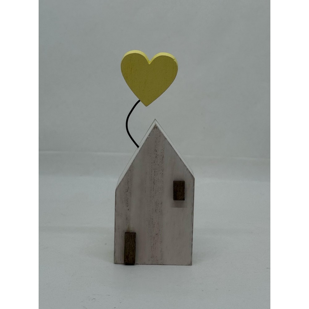 Deliziose casette in legno dallo stile minimalista e naturale, decorate con piccoli cuori colorati su filo metallico. Ogni casetta presenta dettagli rustici come porta e finestra in legno scuro e cuori nei toni pastello e vivaci (giallo, lilla, rosso, verde). Perfette come bomboniere originali, segnaposto o decorazioni per eventi speciali come matrimoni, battesimi o anniversari.